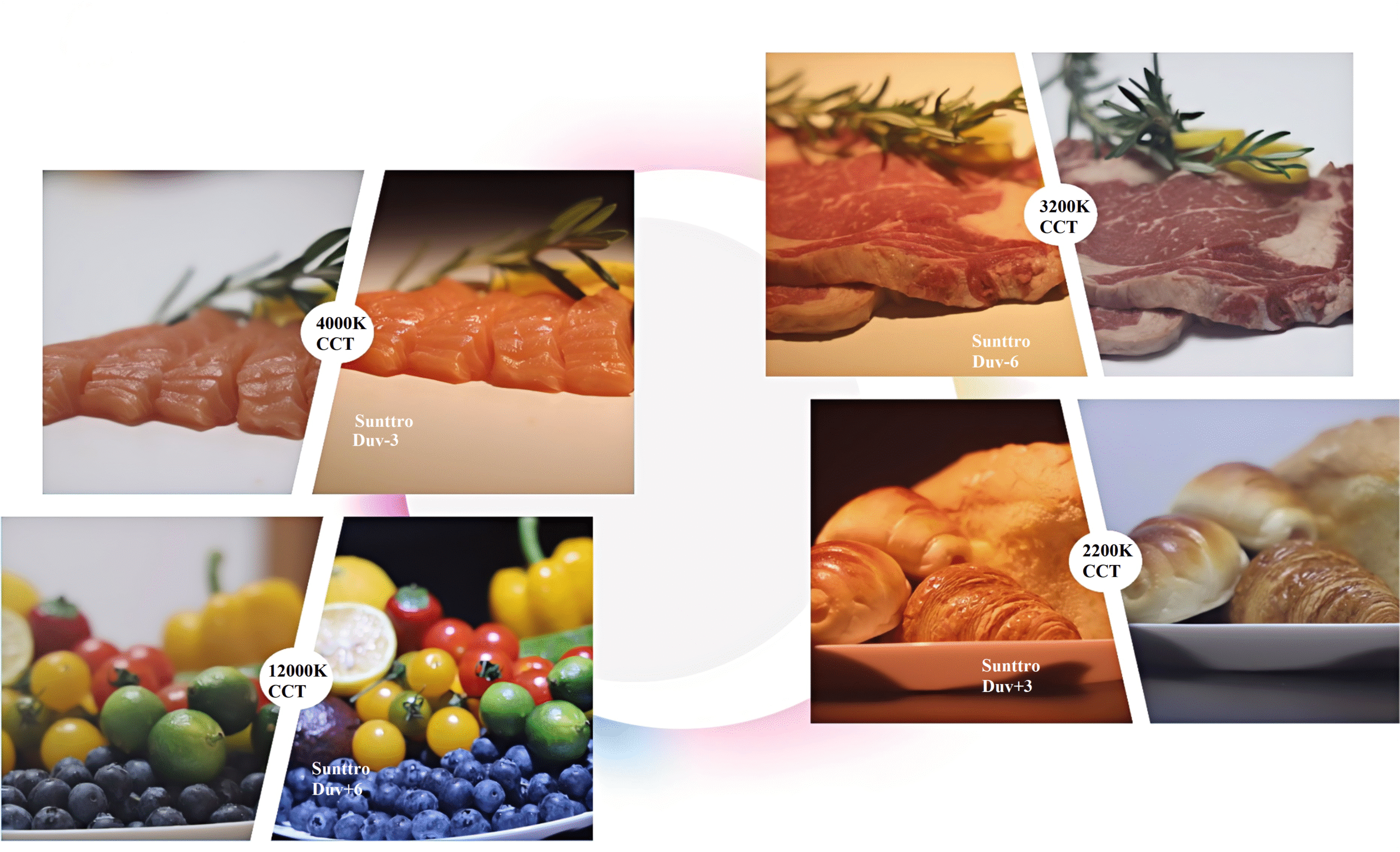 Color temperature refers to the color of light, whether it is warm or cool. Chromaticity (DUV), on the other hand, indicates the degree of redness or greenness within the same color temperature. If the DUV is negative, objects will appear reddish. If the DUV is positive, objects will appear greenish
